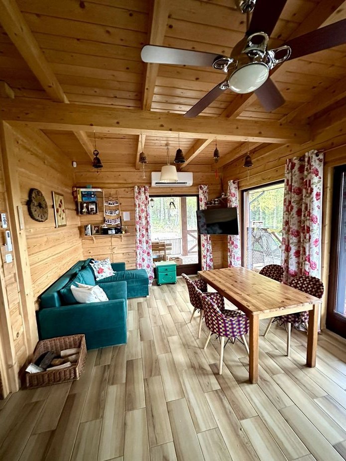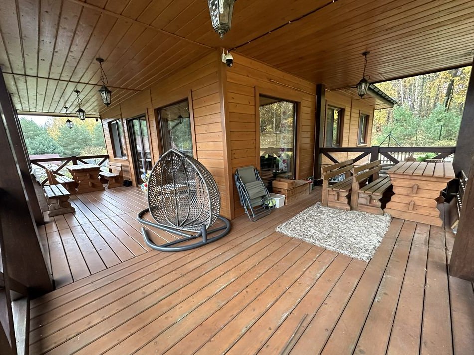 Dom został wykonany z wysokiej jakości drewna i ocieplony wełną mineralną, co gwarantuje doskonałą izolację cieplną. Dach pokryty blachą. Antywłamaniowe okna pozbawione środkowego słupka. We wszystkich zamontowano moskitiery. Wnętrze domu zostało w pełni urządzone i wyposażone – kuchnia z meblami i sprzętami AGD, 3 sypialnie oraz łazienka, a także korytarz i wiatrołap. Dom jest gotowy do wprowadzenia bez dodatkowych nakładów.