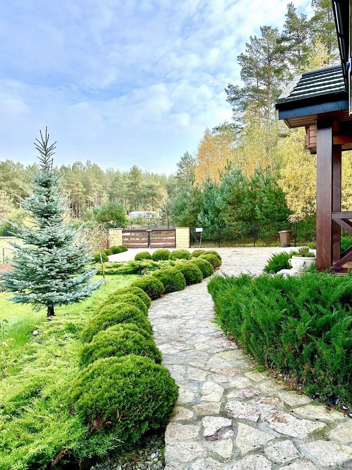 automatyczny system nawadniania – zraszacze i podlewanie kropelkowe (dzięki własnej studni i fotowoltaice utrzymanie ogrodu jest praktycznie bezkosztowe)