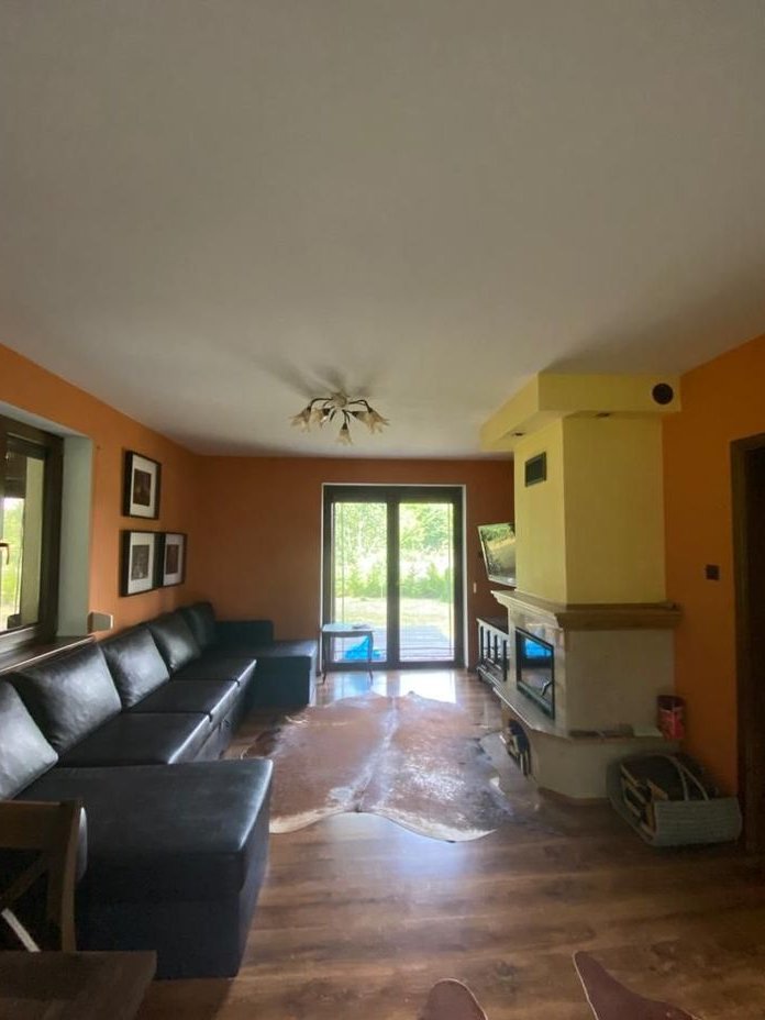 Dom około 100 m, w malowniczej, spokojnej, wypoczynkowej miejscowości-Nowa Wieś Ostródzka, przeznaczony do całorocznej egzystencji jaki i weekendowo- urlopowego pomieszkiwania. Położony na działce o powierzchni 1600 m. Atutem nieruchomości jest jej położenie. Dom znajduje się pod lasem ,około 300 m od bardzo dużego jeziora Mielno (linia brzegowa długość 20450 m, głębokość max 39.9 m, jezioro przepływowe - możliwość spływów kajakowych, na jeziorze 3 wyspy, jezioro rybne, doskonałe do wędkarstwa, wind suftingu itp. ), które otoczone jest lasem. Nowa Wieś Ostródzka to wieś turystyczna powstała 1849 r. , rozciąga się na długości ponad 2 km, w której znajdują się głównie całoroczne domy letniskowe. Bardzo dobry dojazd, zarówno z Gdańska - około półtorej godziny, Warszawy - do 2 godzin, z Olsztyna - około 30 min ,4.5 km od trasy S7, do samego domu prowadzi drogą asfaltowa, ostatnie 200 m utwardzona- prywatna. Budowa domu zakończyła się 2012 roku i jesteśmy pierwszymi właścicielami, budowaliśmy od podstaw. Dom w pełni wyposażony, gotowy do zamieszkania, sprzedaje razem z umeblowaniem oraz wyposażeniem całościowym (sprzęt AGD,- wymieniony na nowy w zeszłym roku, wyposażenie kuchenne, meble, łożka itp.,sprzęt ogrodowy, wysezonowane drewno do palenia w kominku - około 20 metrow. Nie potrzeba żadnego wkładu finansowego do zamieszkania. Dom zimą bardzo ciepły, rozprowadzenie kominkowe bardzo dobrze ogrzewa dom, nieruchomość podłączona do wody i kanalizacji ( projekt UE) nie ma szamba. Dach szczelny, żadnych przecieków. Parter domu: przedpokój, łazienka, salon z kuchnią. Piętro: 3 sypialnie , łazienka. Poddasze: wysokości okolo 1.20. Dom wyposażony jest w meble drewniane wykonane na wymiar. Na działce znajduje się zagospodarowany trawnik, krzewy, drzewa owocowe młode oraz ogromny taras częściowy kryty około 50 m kwadratowych oraz drewutnia z wydzieloną częścią na sprzęt ogrodowy. Taras znajduje sie od strony południowo zachodniej. Zamontowany monitoring i system anytywłamaniowy. Na działce znajduje się również duża kamienna wędzarnia. Do dyspozycji nowa kładka wędkarska. Oferta tylko dla osób prywatnych, nie nawiązuje współpracy z agencjami nieruchomości lub pośrednikami!!!.