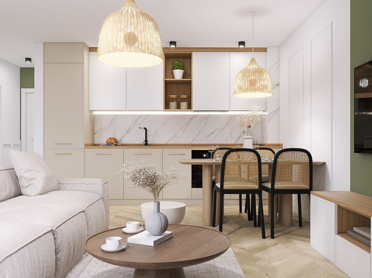 Wnętrze zostało podzielone na spójne strefy, zapewniając użytkownikom maksymalną wygodę użytkowania domu. Mieszkanie jest sprzedawane w stanie deweloperskim.