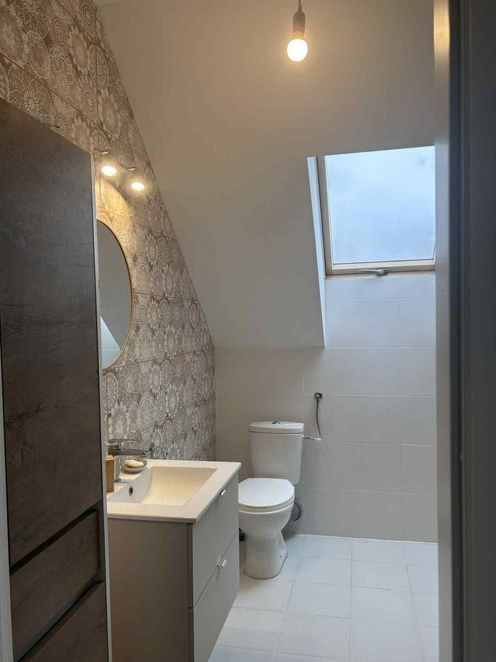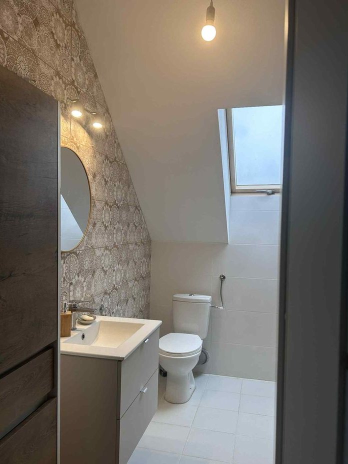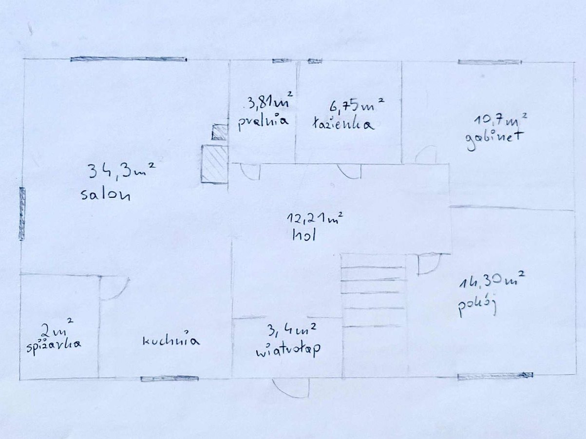 Ponadto na parterze gabinet i główna sypialnia, bądź pokój gościnny. Łazienka z wanną i prysznicem. Standardowe udogodnienia to spiżarnia i pralnia.
