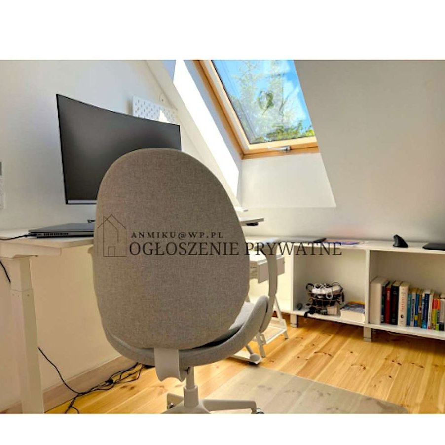 Piętro 2: duża sypialnia z 4 oknami i pięknym światłem, pokój do pracy oraz komunikacja. Konstrukcja ułatwia wielowariantową przebudowę pod różne potrzeby (ten poziom był już trzykrotnie modyfikowany pod zmieniający się styl życia obecnych gospodarzy).