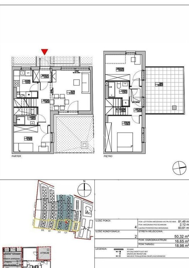 Dwupoziomowy dom atrialny z prywatnym ogrodem i tarasem - 4 pokoje, 82,64 m²