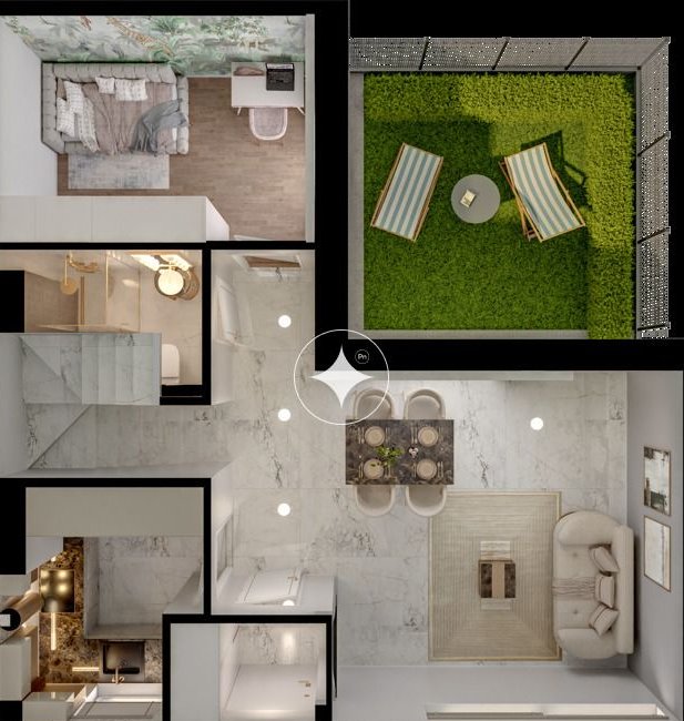Przedstawione wizualizacje i grafiki mają charakter wyłącznie poglądowy i stanowią wyłącznie materiał pomocniczy, ułatwiający zorientowanie się w ogólnym wyglądzie oferowanej nieruchomości.