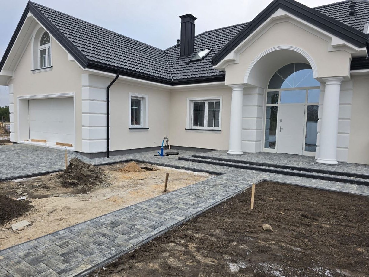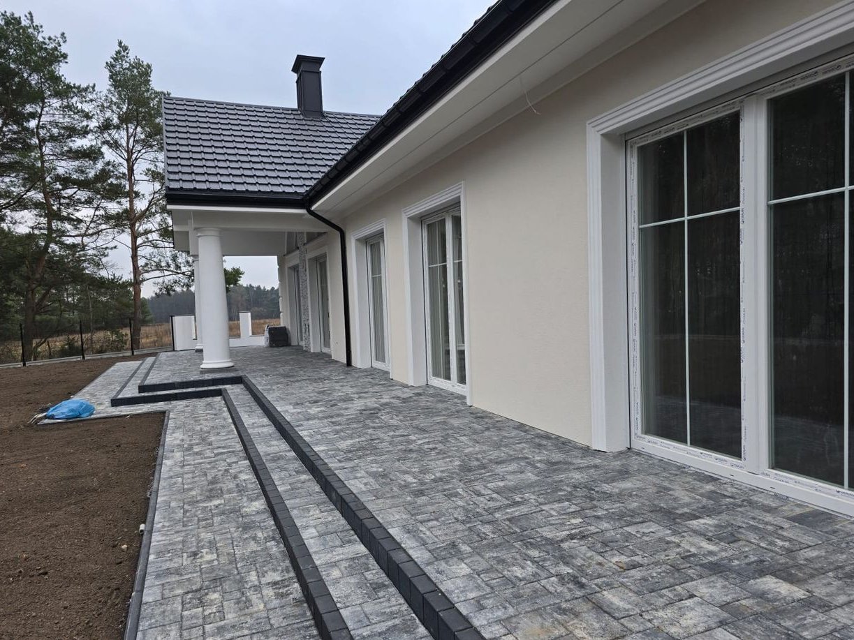 - Podjazd, chodnik oraz taras ogrodowy z kostki brukowej,