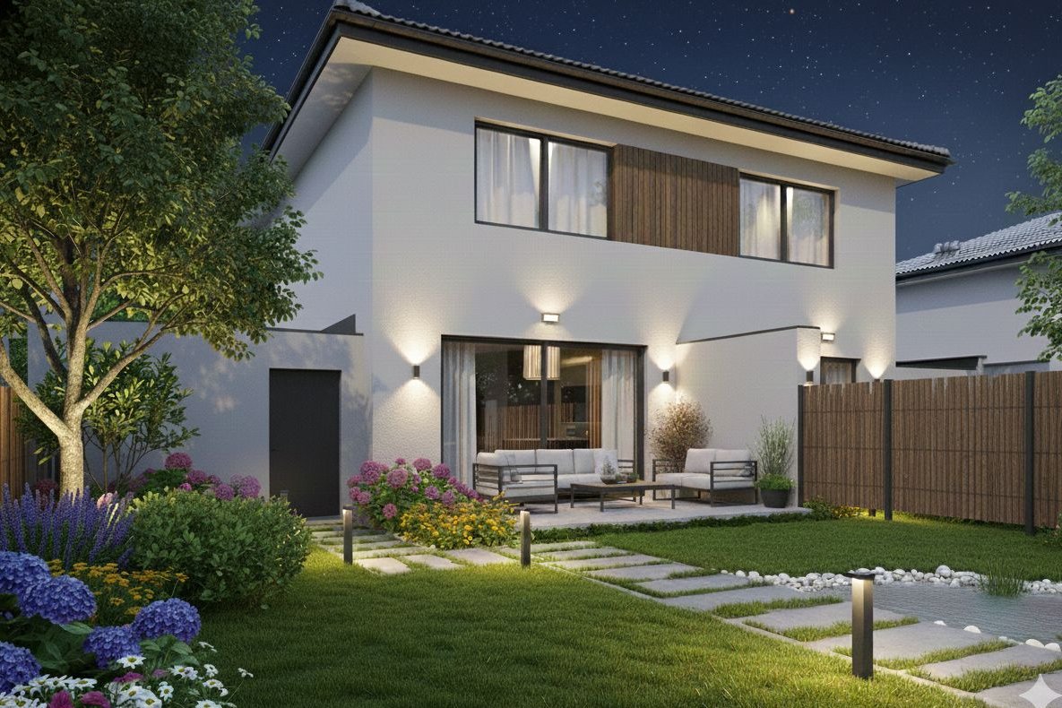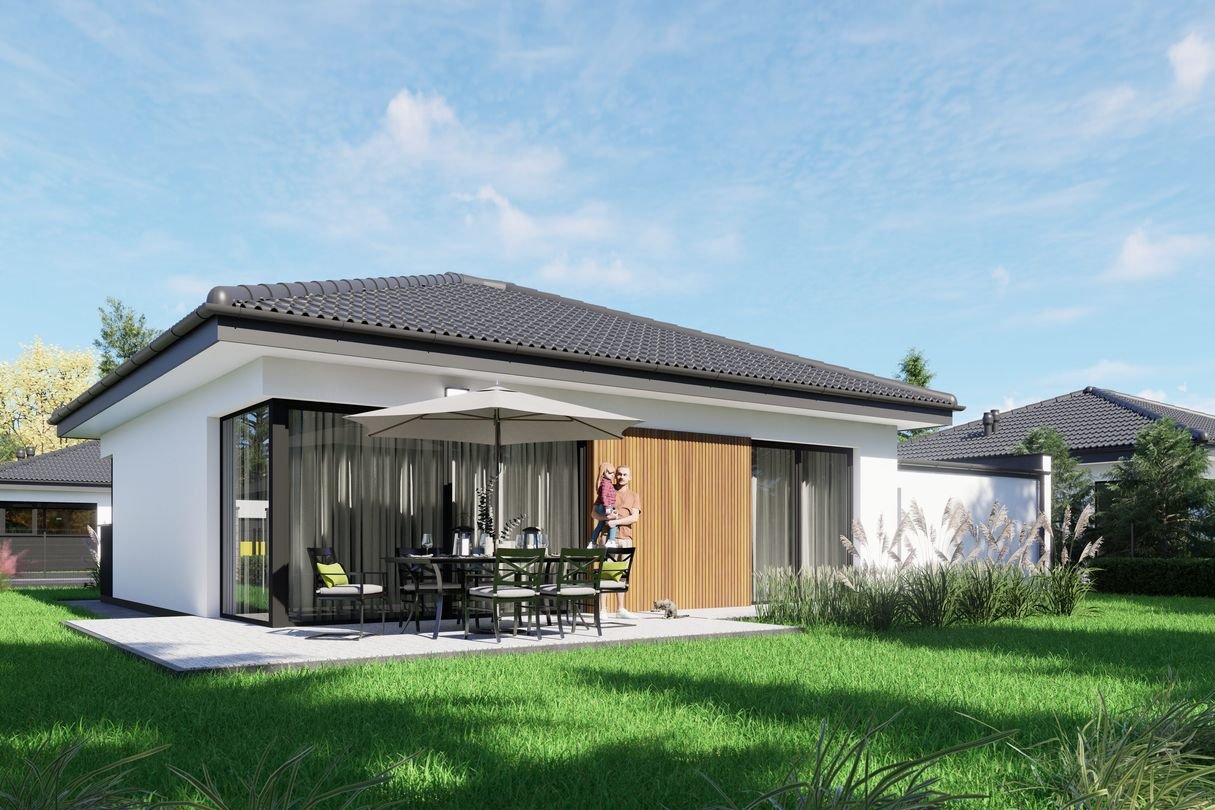domów parterowych, w harmonijny sposób łączy tak ważną w