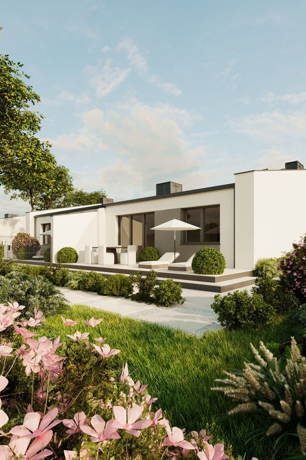 Przedstawiamy najnowszy projekt domu parterowego w zabudowie bliźniaczej o pow. 88,41m2 na wydzielonych działkach o pow 369-408m2.