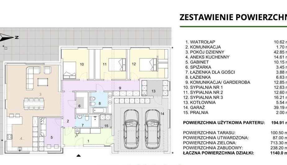 - Szerokie garaże dwustanowiskowe na dwa samochody