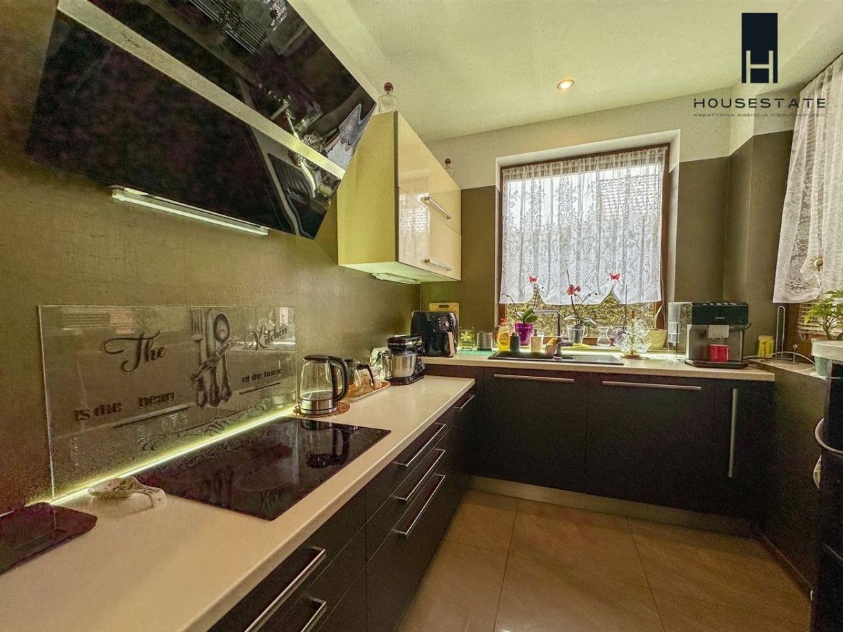 Ogrzewanie gazowe – piec dwufunkcyjny z ogrzewaniem podłogowym, co zapewnia wysoki komfort użytkowania i niskie koszty eksploatacji.