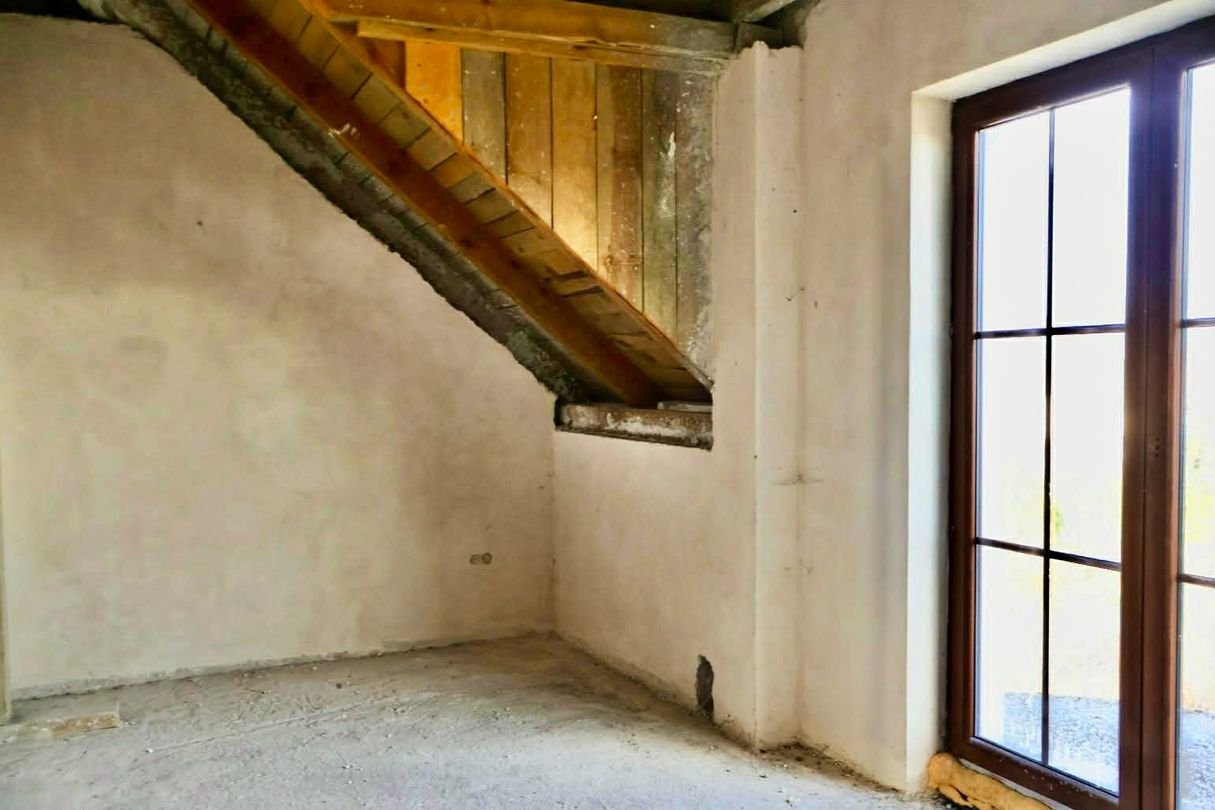 Fundamenty, stropy, schody wewnętrzne i balkony wylewane. Okna drewniane.