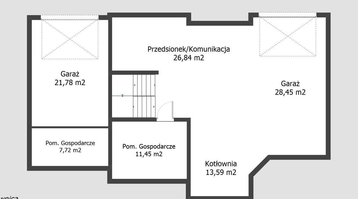 - piwnica: dwa odrębne garaże, kotłownię ,dwa pomieszczenia gospodarcze ,