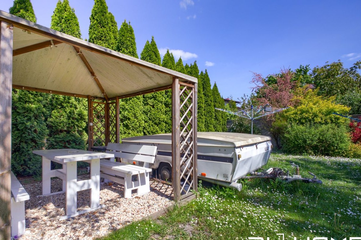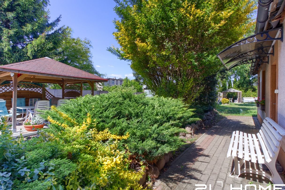Oprócz tego dwa garaże oraz pięknie urządzony ogród z nasadzeniami i dwiema altanami.