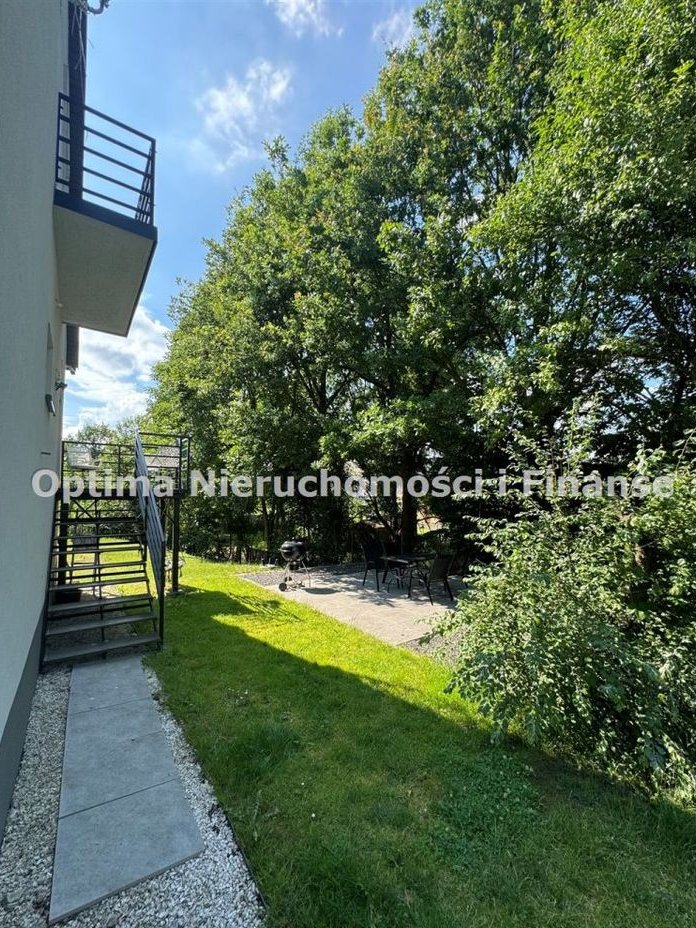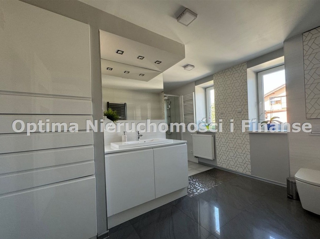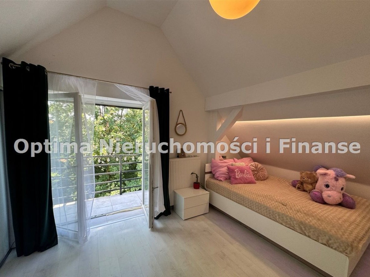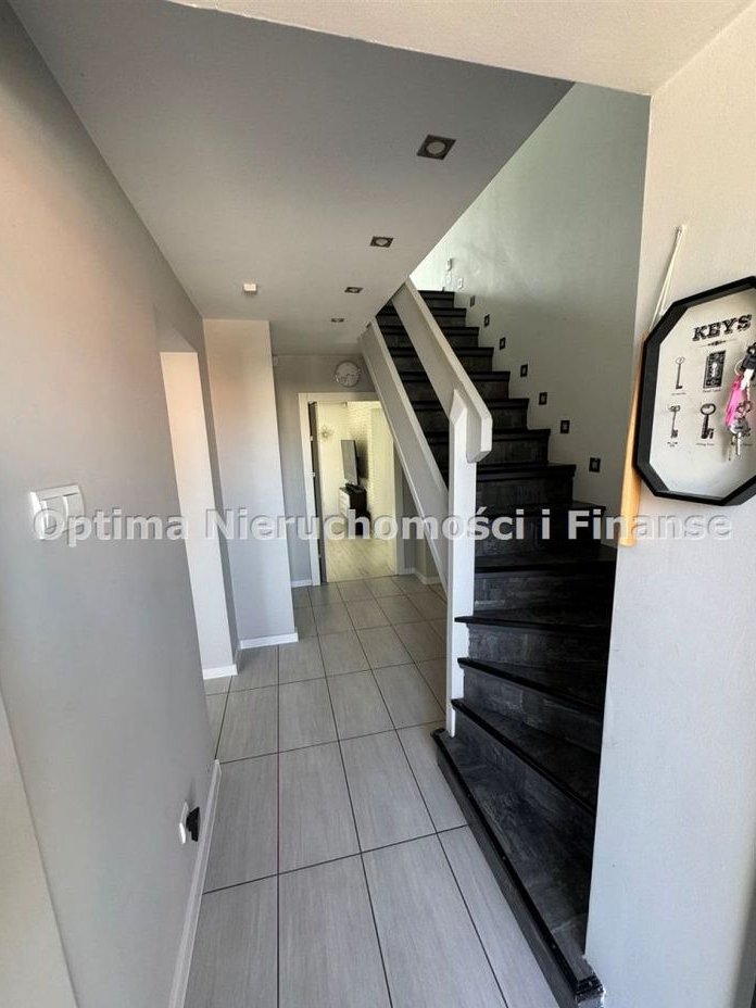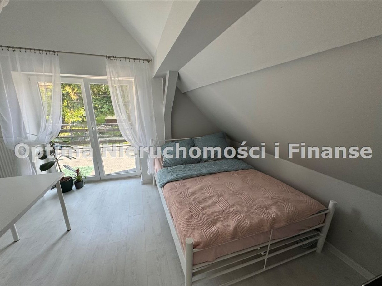 Na parterze znajduje się: kuchnia z dużymi przeszkleniami i wyjściem na taras i ogród, 1 sypialnia, łazienka z toaletą i prysznicem, przestronny pokój dzienny z kominkiem i przedpokój. Na drugiej kondygnacji jest: duża sypialnia z balkonem oraz garderobą ; pokój z balkonem, łazienka z prysznicem, przedpokój.