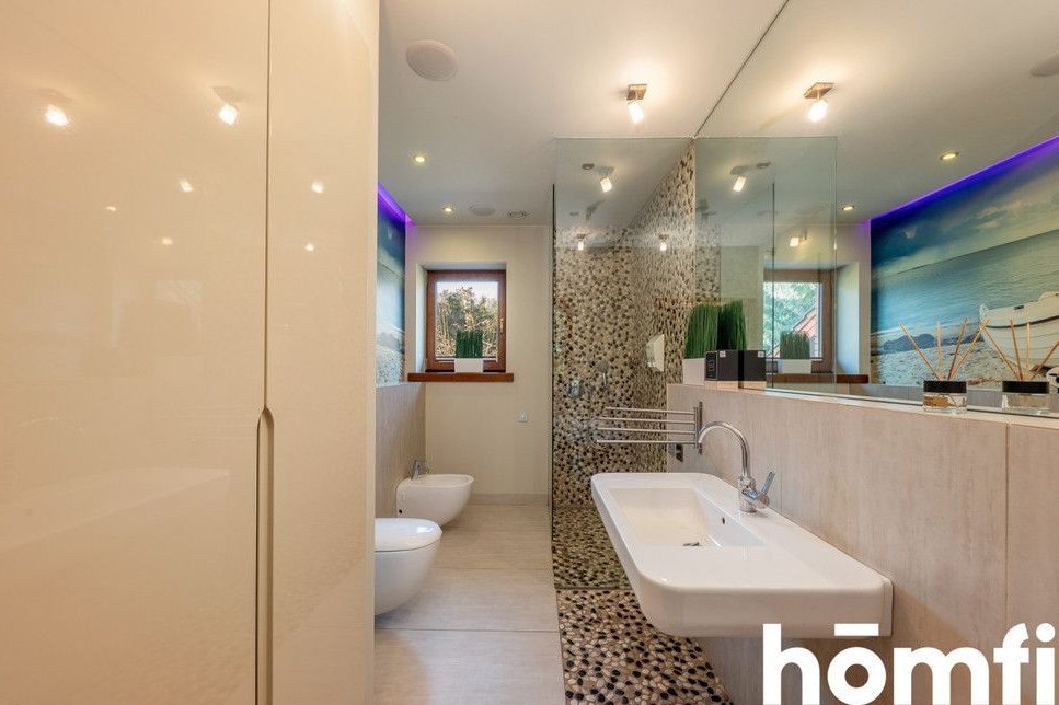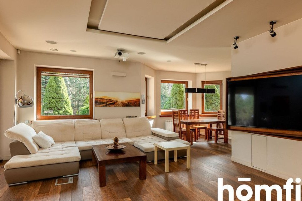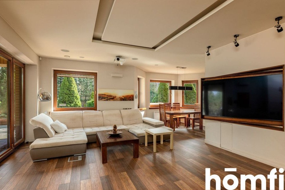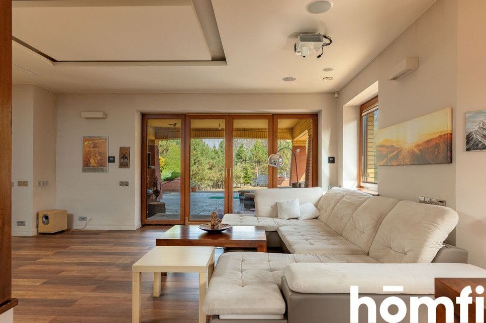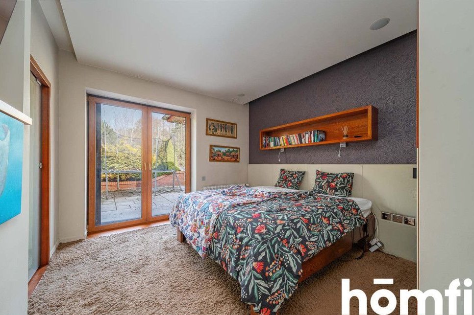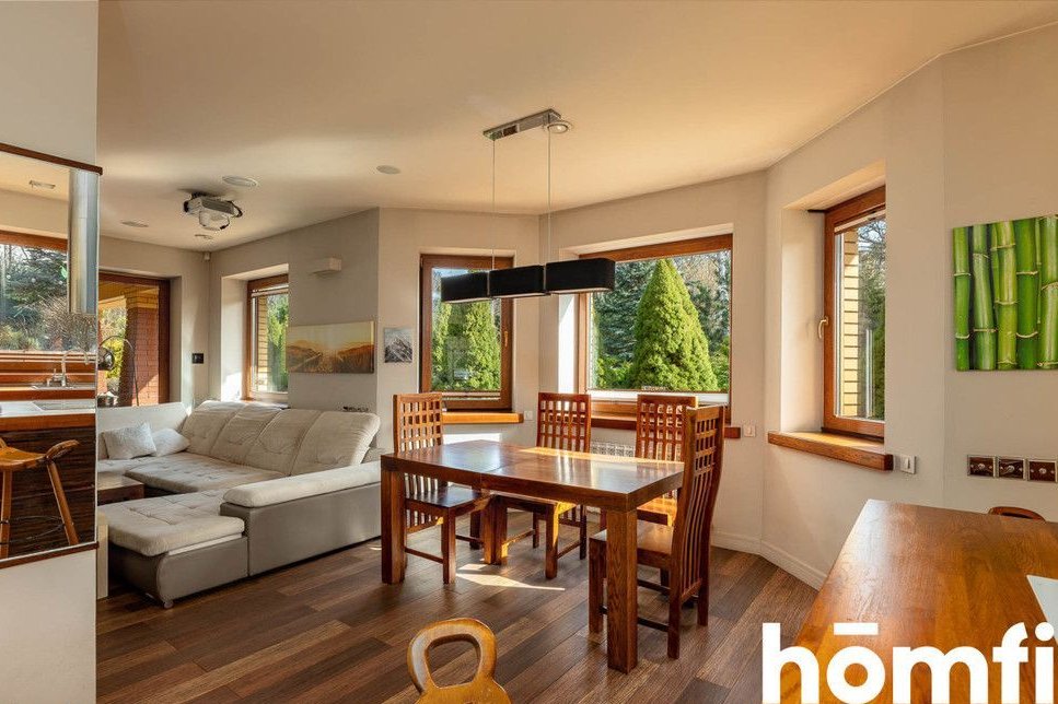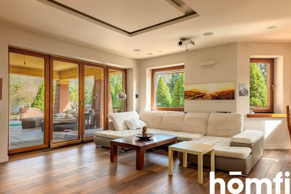 The property is located in a green part of Tuszyn, a popular choice for those seeking privacy and communion with nature. The area is characterized by low-rise single-family homes and abundant forested areas, ensuring a quiet and comfortable life away from the hustle and bustle of the city. The location also guarantees easy access to Łódź and key services. The quiet, prestigious neighborhood of single-family homes, proximity to forests and recreational areas, provides quick access to Łódź, and convenient transportation and infrastructure. This single-story house, without a basement, was built using traditional technology and high-quality materials, ensuring durability and energy efficiency. The 36.5 cm thick block walls guarantee excellent thermal insulation, while the solid foundations (footings and foundation slabs) ensure structural stability. The multi-pitched roof gives the building an elegant and timeless character. High-quality workmanship, modern construction technologies, energy-saving solutions, and a functional, comfortable structure. This spacious 222.31 m² house was designed with the comfort of a family of four in mind. A well-thought-out layout ensures everyday comfort and high functionality. Four bedrooms, two bathrooms, a laundry room and utility rooms, an integrated garage (2 spaces – 32.9 m², not included in the house's square footage), and an additional detached garage (25 m²). The house is equipped with modern systems that significantly improve comfort and reduce maintenance costs: underfloor heating throughout the house, air conditioning, heat recovery, a fireplace with the option of connecting to the system, a 20-22 kW photovoltaic system, two electric car chargers, intelligent home management (lighting, heating, blinds, and irrigation), and a sound system in every room. Security and privacy are ensured by: CCTV, anti-burglary blinds, alarm barriers, and access to the property from two sides. The 3,836 m² plot offers vast design possibilities and provides space not found in standard offers. Property price: PLN 3,730,000. Interested? Contact us at 575656123 or send us an email using the contact form in the ad. Did you know that with homfi, you can buy a property comprehensively, meaning you can handle everything with one company? In addition to real estate agents who help you find and purchase properties, we also provide experienced mortgage experts, talented interior designers, and resourceful rental management specialists. This means you can find a property, finance the purchase, design and finish the interior, and then sell or rent it. Interested? Ask your listing manager for details.