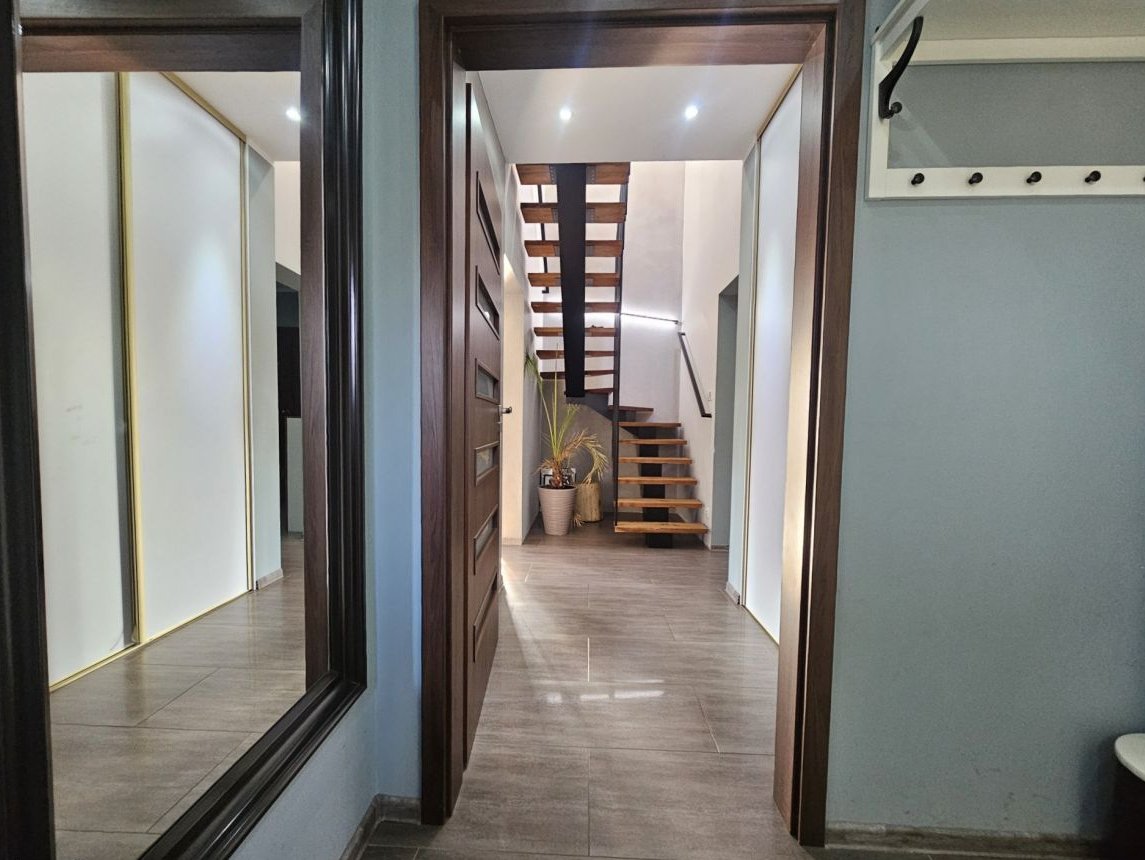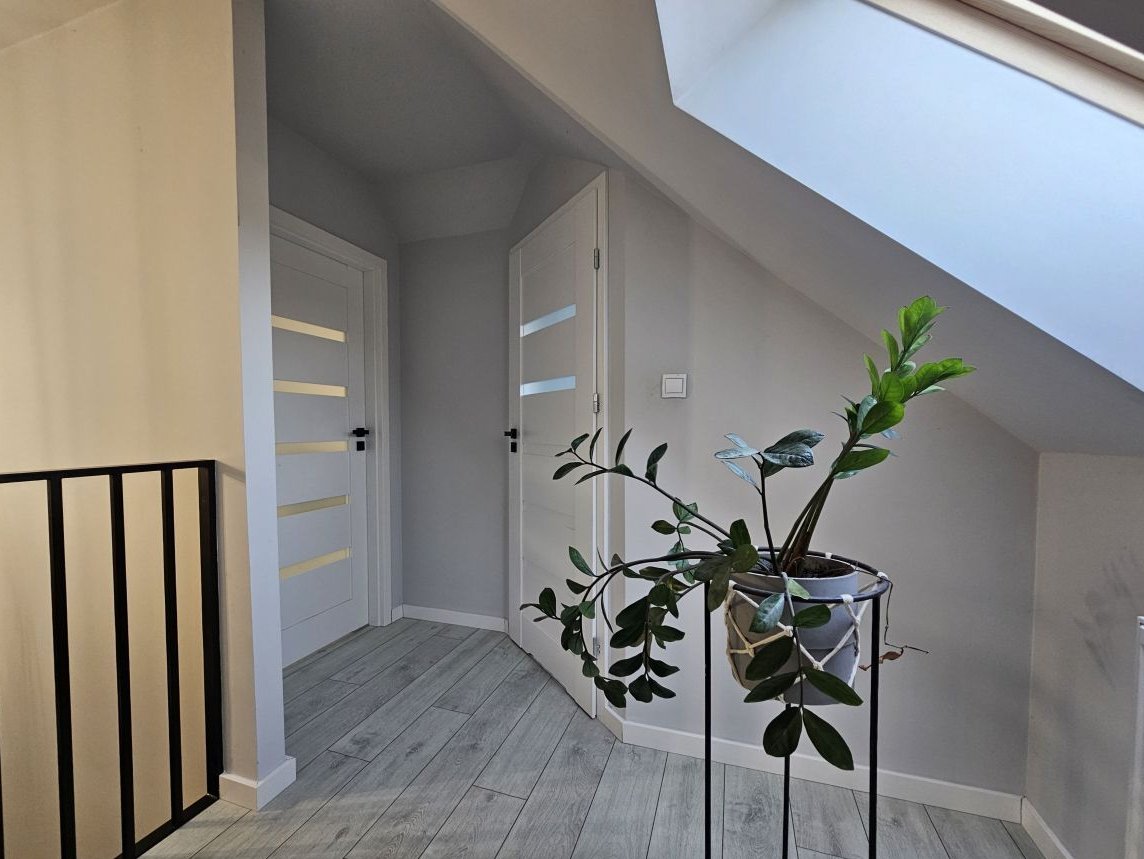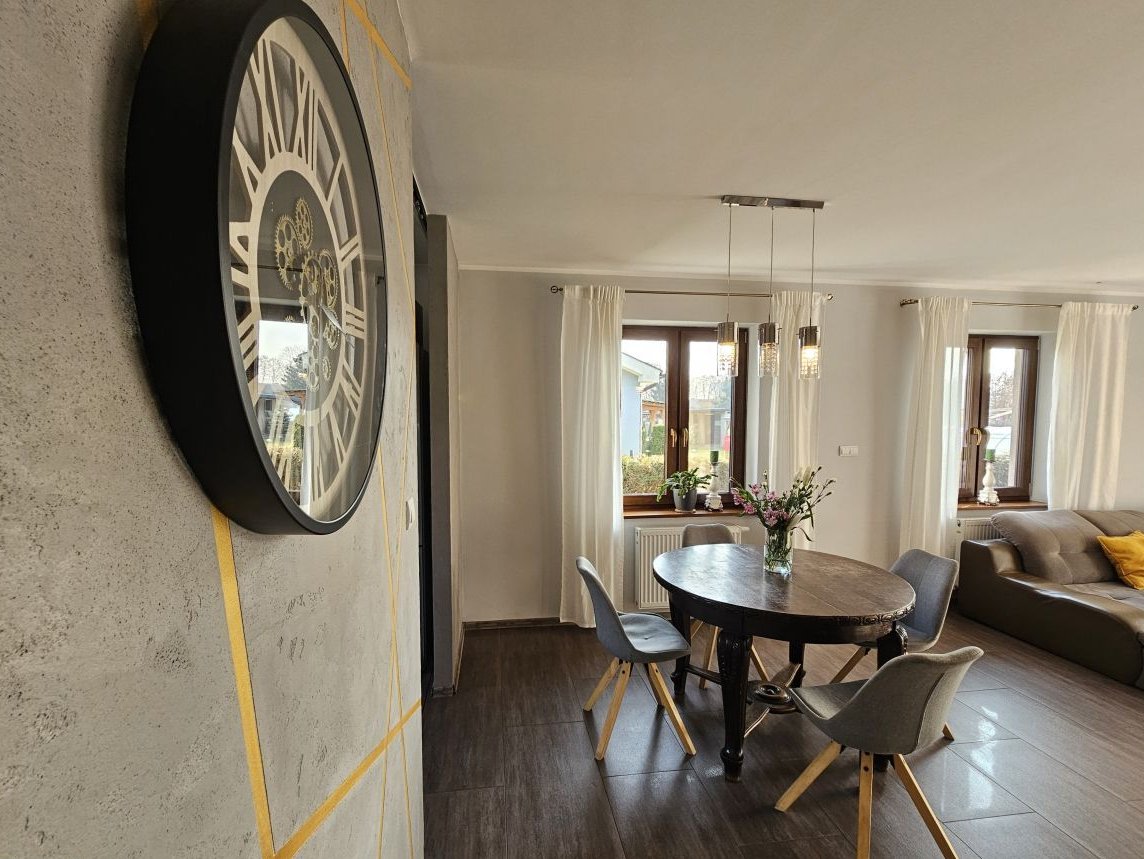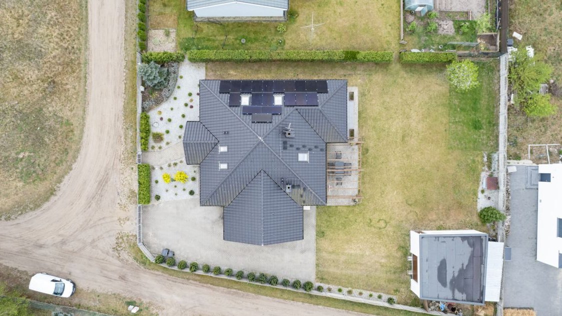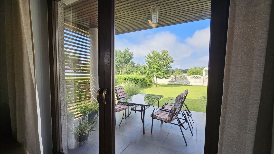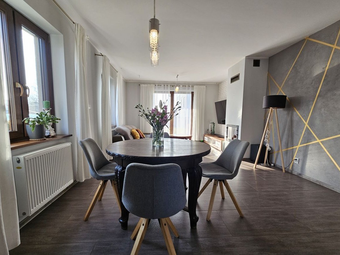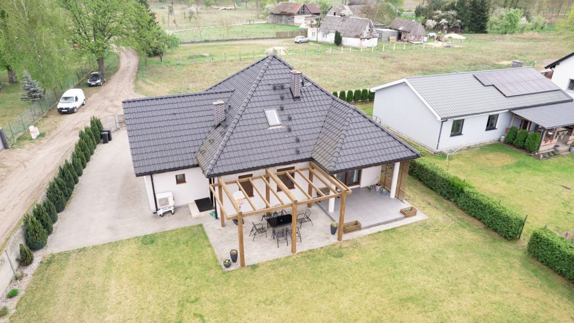 Dom wyróżnia się nowoczesnymi rozwiązaniami technologicznymi, takimi jak pompa ciepła i instalacja fotowoltaiczna, które zapewniają wyjątkowo niskie koszty utrzymania.