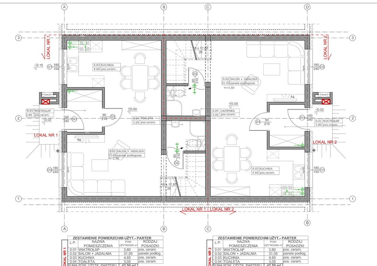 Strefa dzienna: salon z jadalnią 30.38m², kuchnia 5.00m², toaleta 3.15m² oraz wiatrołap 3.40m².