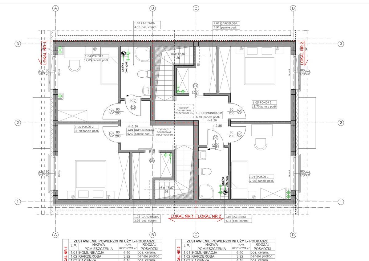 Strefa nocna: dwie sypialnie 12.05m² i 13.60 m²; garderoba 3.70 m², łazienka 4.00m² i korytarz 6.40m²