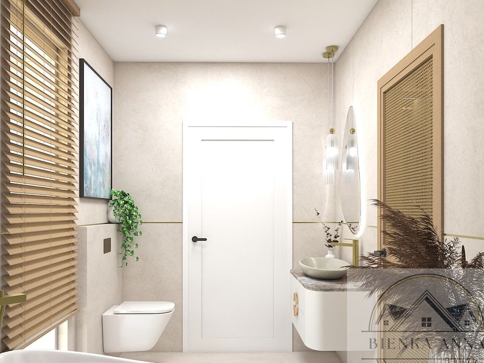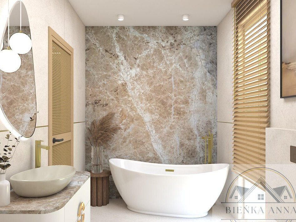 Łazienki: 2 ( główna na piętrze i oddzielna w sypialni) WC na parterze.