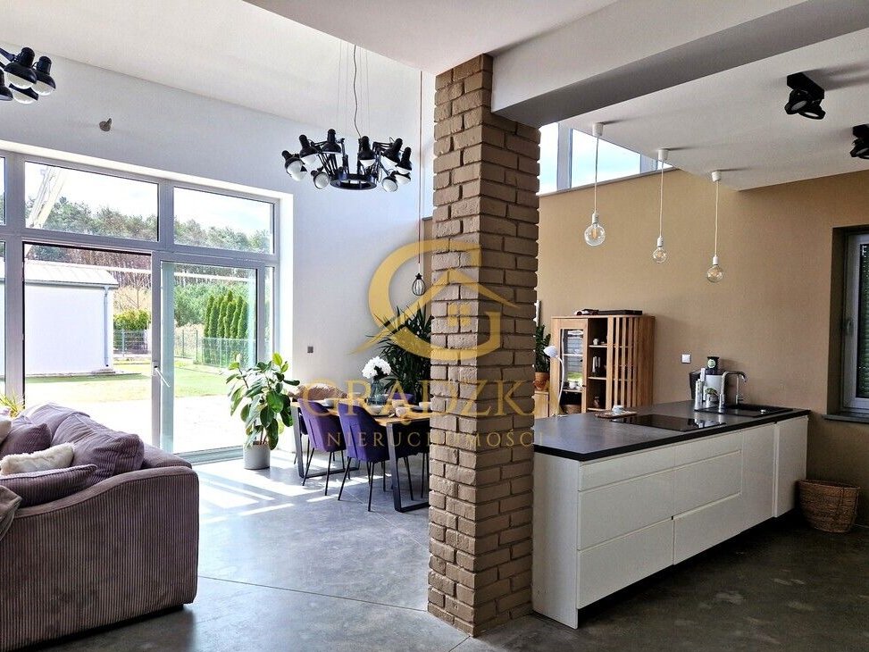Grądzka Nieruchomości – Ma przyjemność zaprezentować Państwu nieruchomość, która wykracza poza schematy. To dom wybudowany według indywidualnego projektu, gdzie nowoczesna, odważna bryła spotyka się z domową przytulnością.