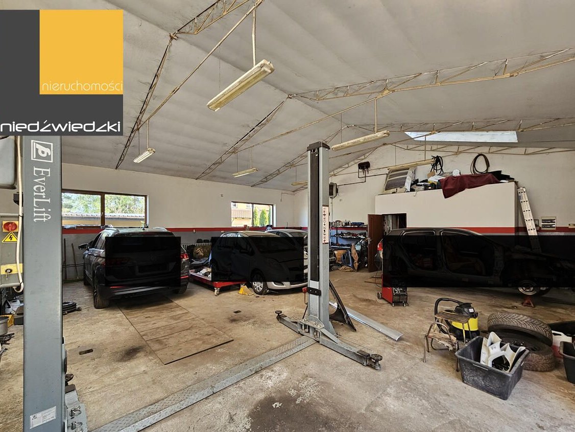 Nieruchomość zabudowana budynkiem mieszkalnym wolnostojącym o pow. 199m2 oraz budynkiem gospodarczym o pow. 140m2, który obecnie wykorzystywany jest na warsztat samochodowy.