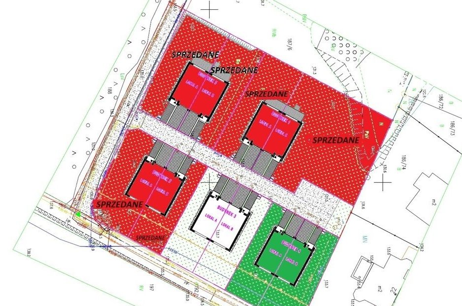 Przedmiotowe nieruchomości różnią się wielkością działek od ok. 308m2 do ok. 885m2. Budynek stanowi spójną bryłę.