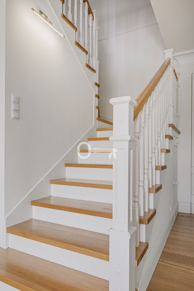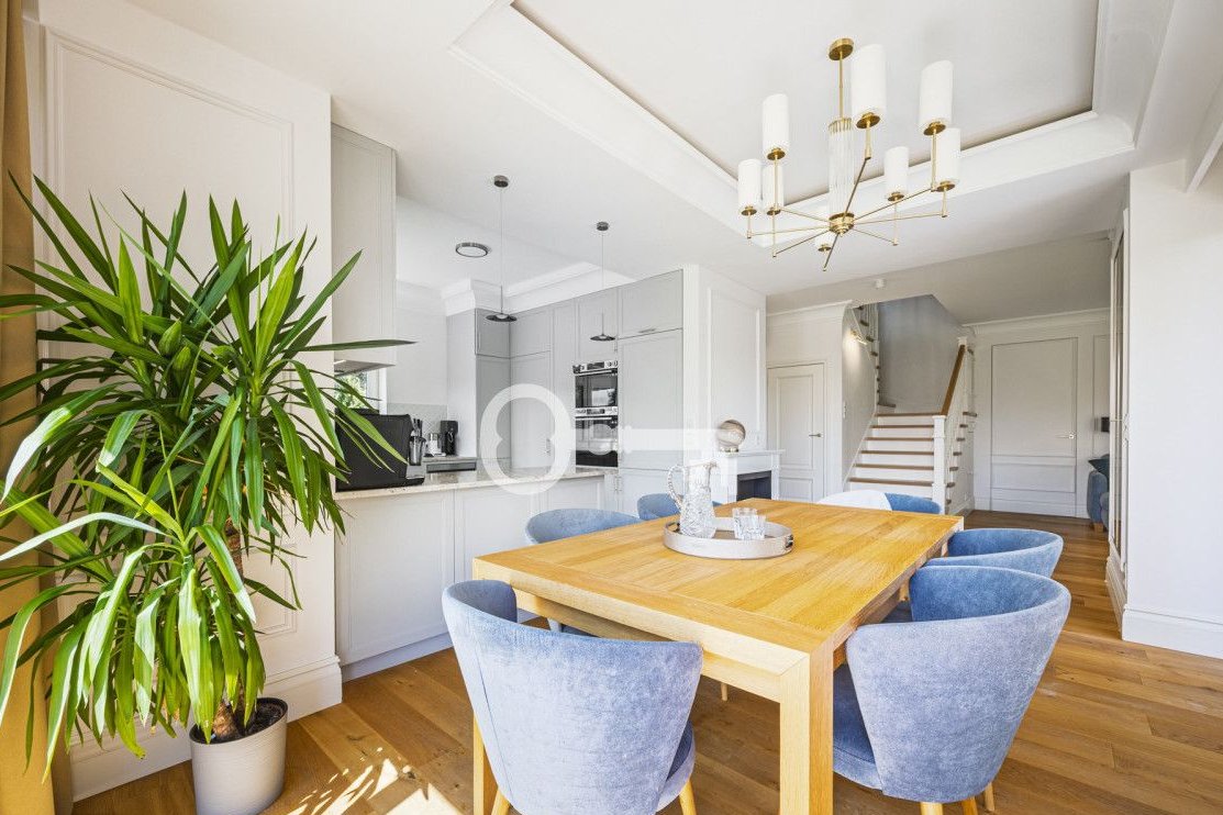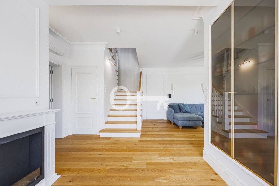 The house is divided into a living area (ground floor) and a private area (first floor). The floors are covered with oiled oak planks. Air conditioning has been installed in every part of the house. Thanks to the high ceilings (approx. 3 m on the ground floor and 2.9 m on the first floor), you feel a sense of space as soon as you cross the threshold.