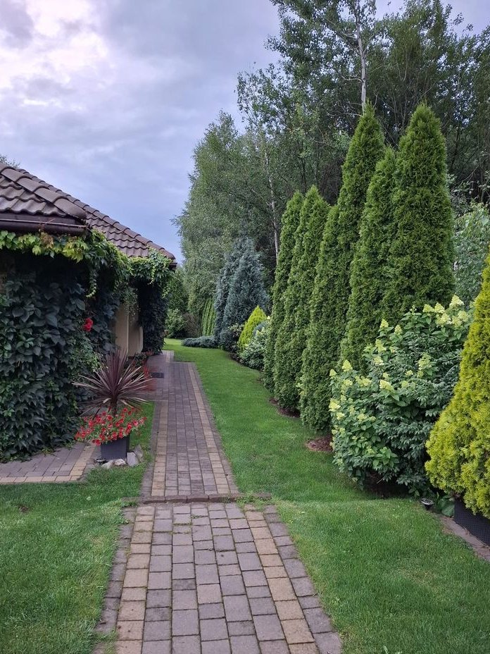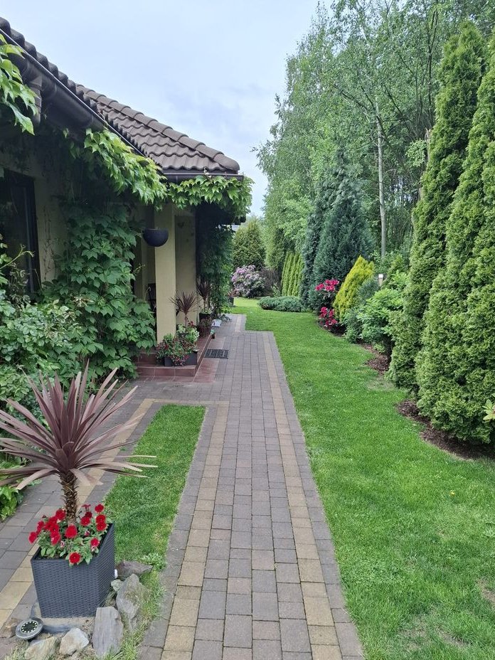 Już od pierwszych chwil uwagę przyciąga zadbana działka o powierzchni 730 m², pełna zieleni, kwiatów i starannie dobranych nasadzeń oraz tarasem o powierzchni 20 m2. To przestrzeń, w której można naprawdę odpocząć – z poranną kawą, w ciszy, z dala od miejskiego zgiełku.