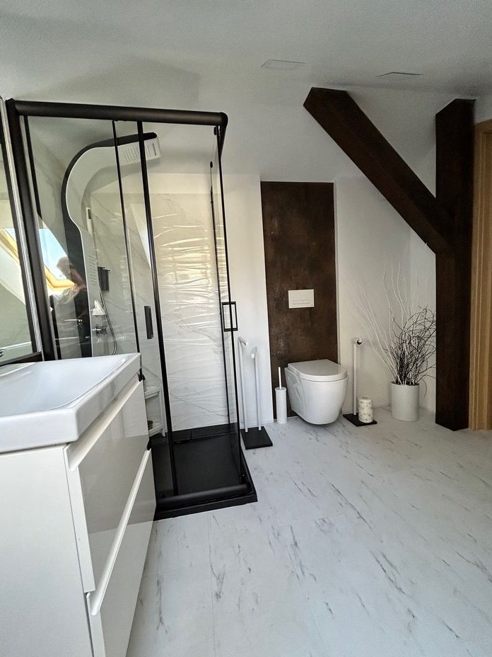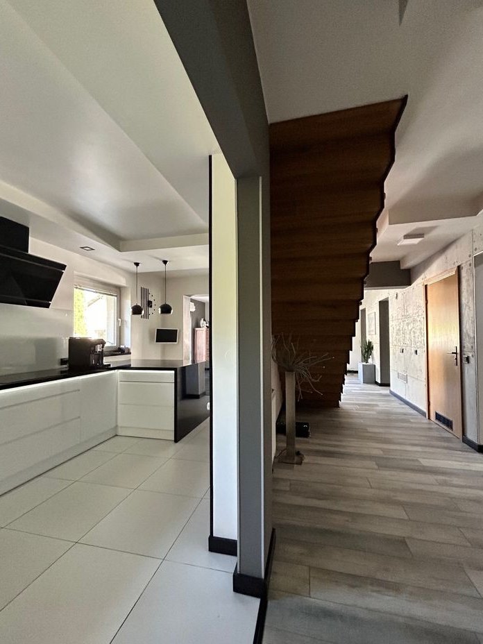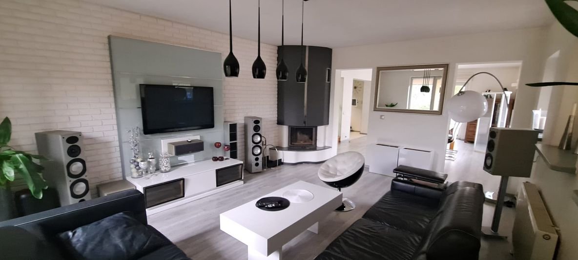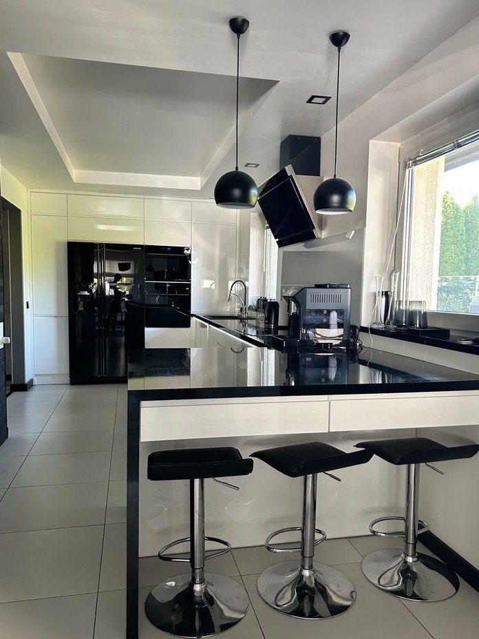 Wnętrze domu zostało wykonane z wysokiej jakości materiałów. Dom przeszedł remont w roku 2022 i 2024, w tym remont poddasza, nowe podłogi w całym domu, malowanie ścian. Zainstalowano na dachu fotowoltaikę - net-metering 8,5 KW ("stary system") oraz klimatyzację z funkcją grzania w każdym pokoju (łącznie 7 szt.)