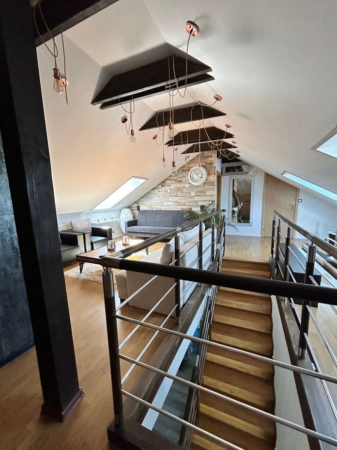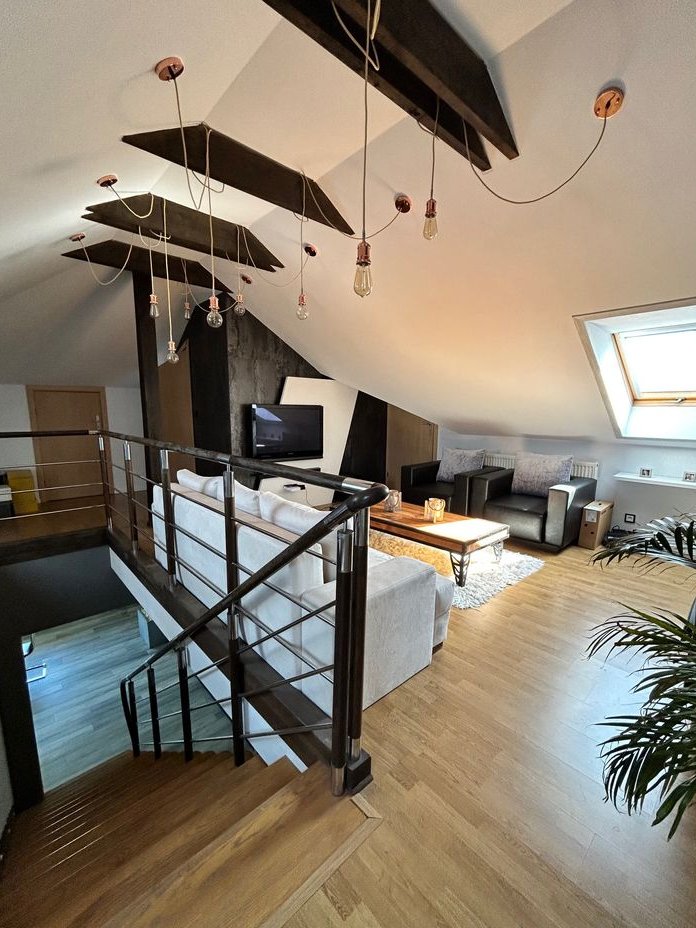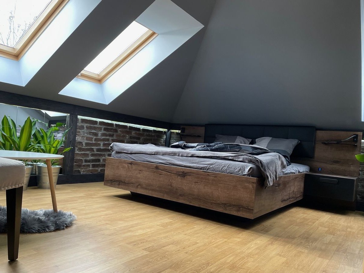 Na poddaszu znajdują się: salon, zamknięta sypialnia, łazienka, oraz 3 pomieszczenia do przechowywania.