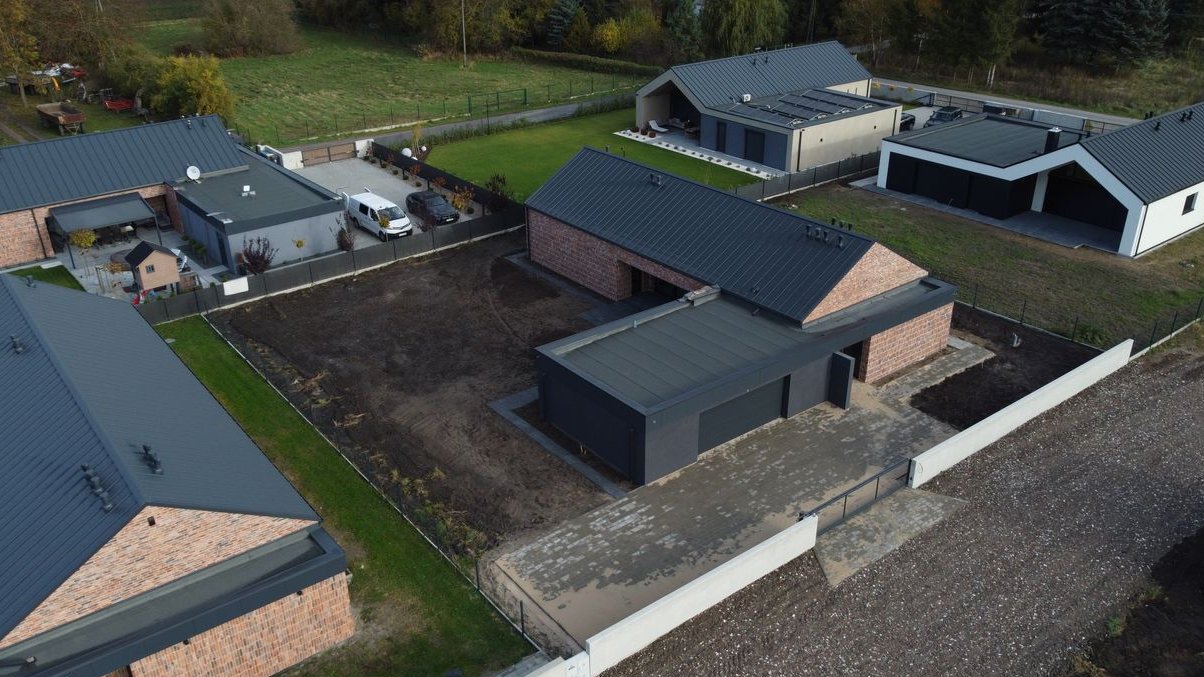 Instalacje: co – pompa ciepła, wod-kan z wyjściem ogrodowym, elektryka przystosowana do ID, sieć lan, monitoring zew. i wew., wideofon i sterowanie bramą zew.