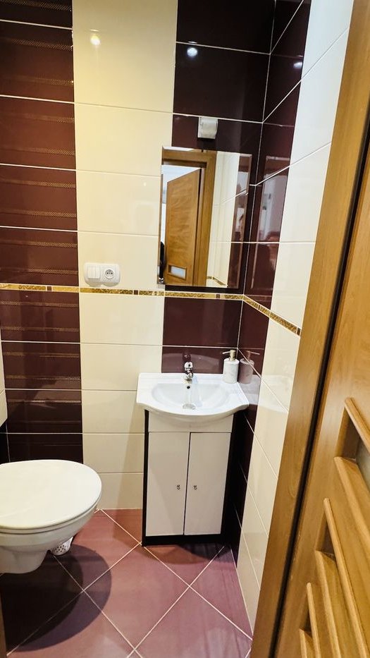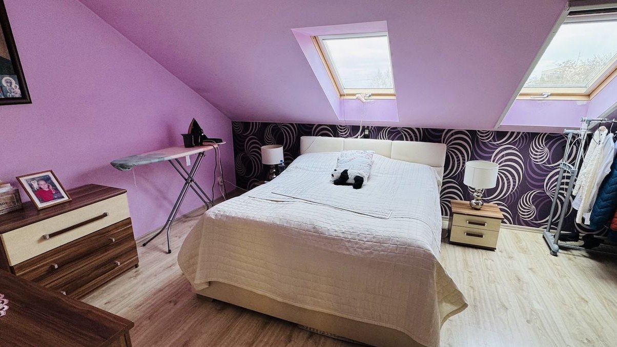 1 Piętro - dwie sypialnie ze skosami oraz duża łazienka z wanną i prysznicem.