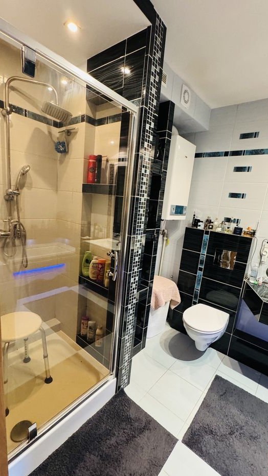 Ogrzewanie gazowe - piec dwufunkcyjny, pod kaflami na podłodze w kuchni mata grzewcza, na piętrze w łazience pod płytkami na podłodze również mata grzewcza.