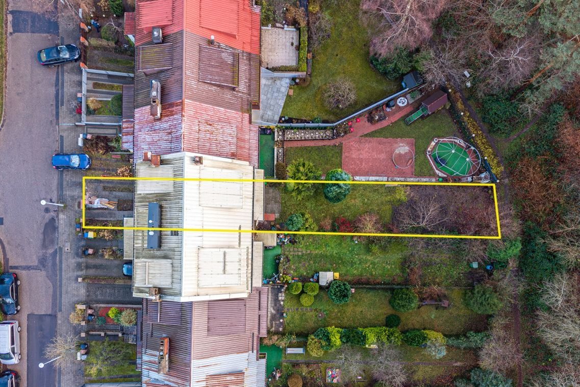 Nieruchomość znajduje się na działce o powierzchni 279 m², w całości ogrodzonej i z bezpośrednim dostępem do drogi publicznej. Ogród jest częściowo zagospodarowany i otoczony zabudową o podobnym charakterze. Bliskość lasu oraz spokojna atmosfera osiedla podkreślają wyjątkowy klimat tego miejsca.