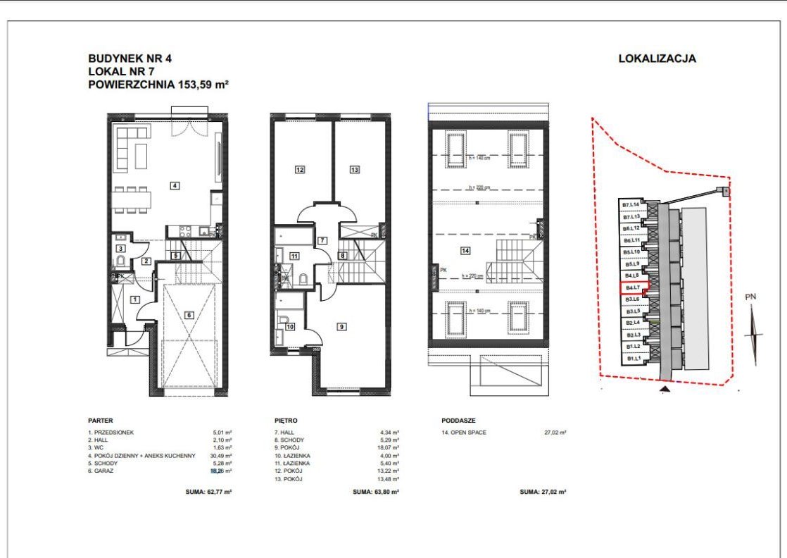 *Piętro o pow. 63,80 m²: