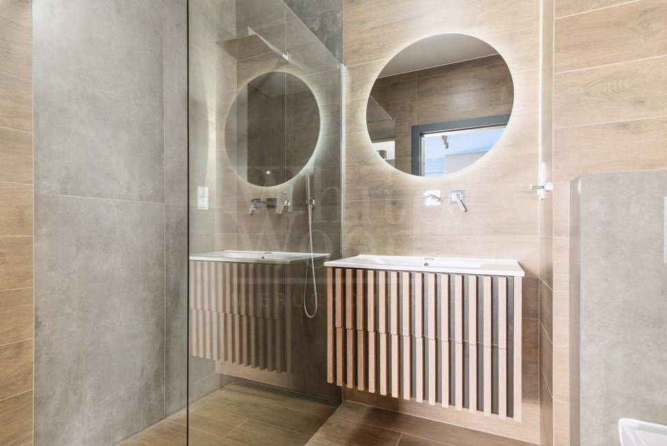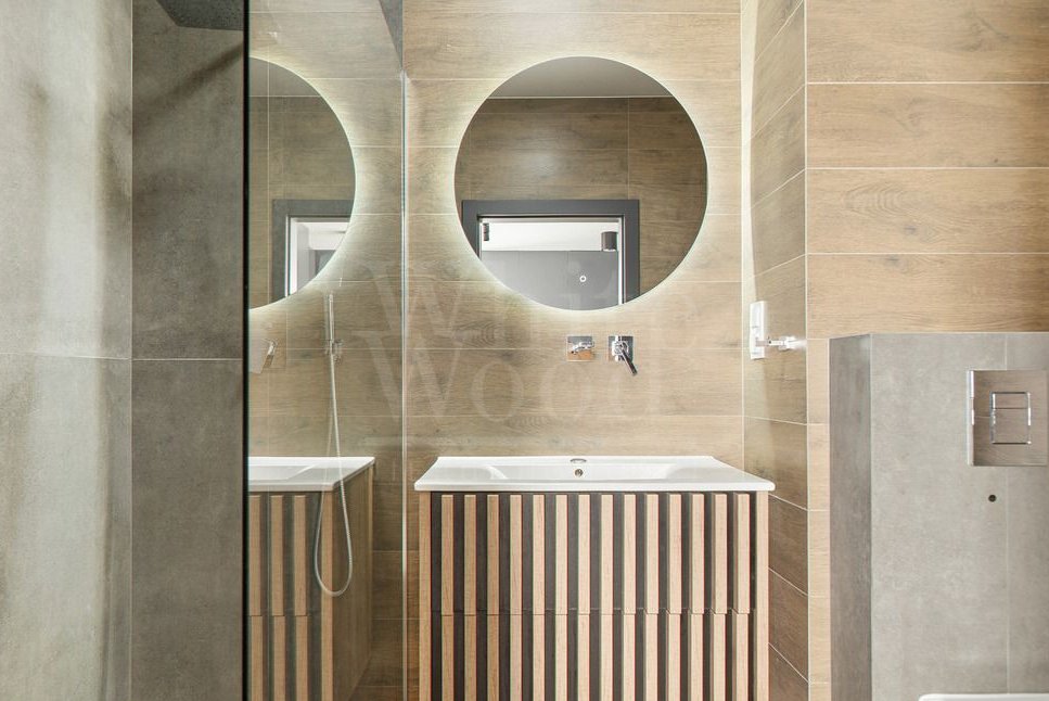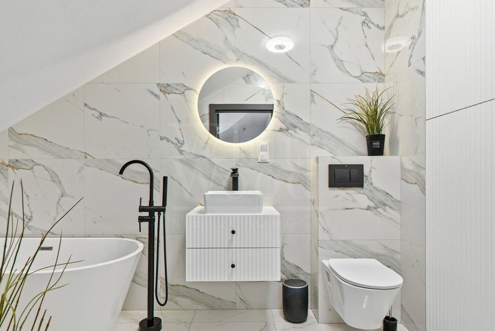 Nowoczesna łazienka z prysznicem i wbudowanym nagłośnieniem