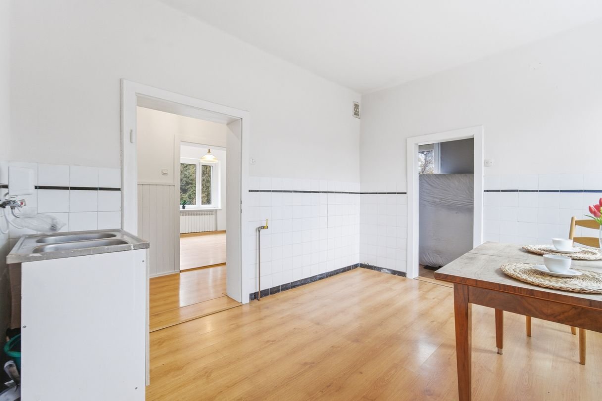 Dom wymaga remontu, co dla wielu osób będzie szansą na stworzenie wnętrz od podstaw, zgodnie z własnym gustem i aktualnymi standardami.