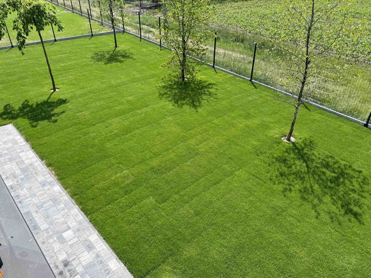 - Teren zielony wyrównany i obsadzony trawą.