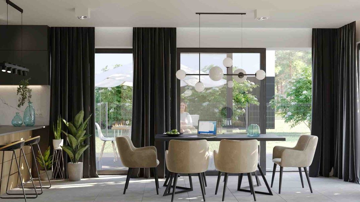 Nowoczesna bryła: Nasze domy wyróżniają się nowoczesną bryłą, której elegancja doskonale harmonizuje z pięknem okolicznej przyrody. Architektura budynków została starannie zaprojektowana, aby stworzyć unikalne i stylowe miejsce do zamieszkania.
