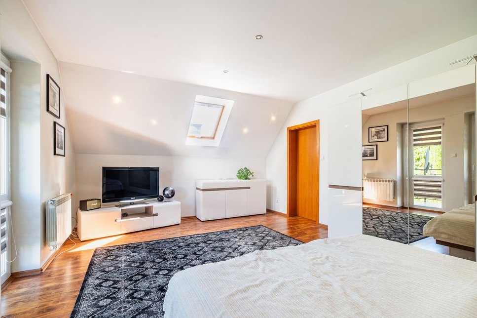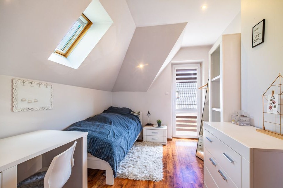 - Funkcjonalny rozkład pomieszczeń – idealny dla rodziny z dziećmi, zapewniający prywatność i wygodę.