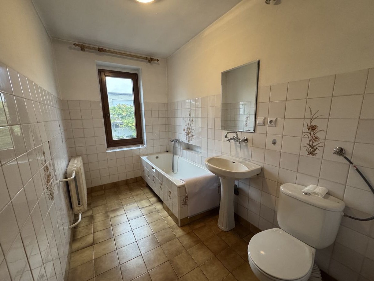 Poza tym łazienka z wanną, umywalką i toaletą.