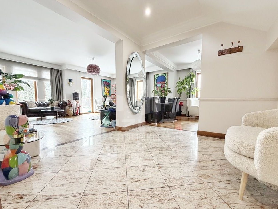 Na poziomie parteru znajduje się salon połączony z jadalnią, główna kuchnia, pokój (gabinet), łazienka, kuchnia gospodarcza z przejściem do garażu, przedpokój oraz wiatrołap. W gabinecie, salonie oraz jadalni na podłodze deska, w przedpokoju i wiatrołapie granit. Meble kuchenne z 2023 roku wykonane pod wymiar z "wyspą", wraz ze sprzętem AGD wysokiej klasy firmy "Haier". W jadalni znajduje się kominek z nadmuchem ciepłego powietrza. Całość wnętrza wykonana z wysokiej jakości materiałów.