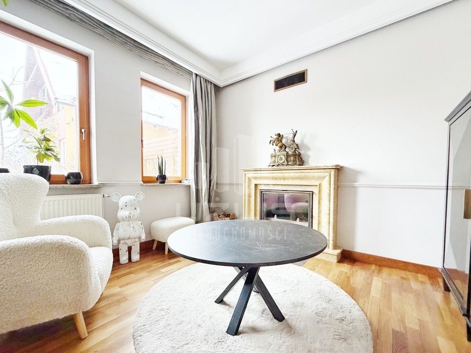 Zastosowano wiele przemyślanych, ciekawych rozwiązań tworząc unikalny, nowoczesny charakter nieruchomości. Bryła budynku zwraca uwagę oryginalną formą. Cechuje go dbałość o każdy szczegół oraz nowoczesny charakter. Niezwykle funkcjonalne wnętrze z wyraźnym podziałem na strefę dzienną i nocną. Niewątpliwym atutem tej działki jest położenie blisko Parku oraz bliskość Bulwaru Nadwiślańskiego. Dodatkowym atutem nieruchomości jest system alarmowy podzielony na strefy - podłączony z agencją ochrony. Budynek posiada okablowanie światłowodowe wraz z rozbudowanym system telewizji siatkowej i cyfrowej.