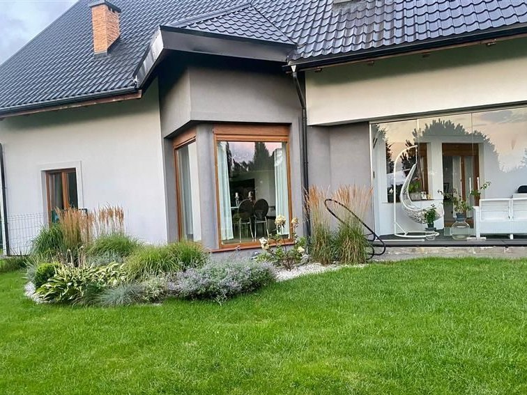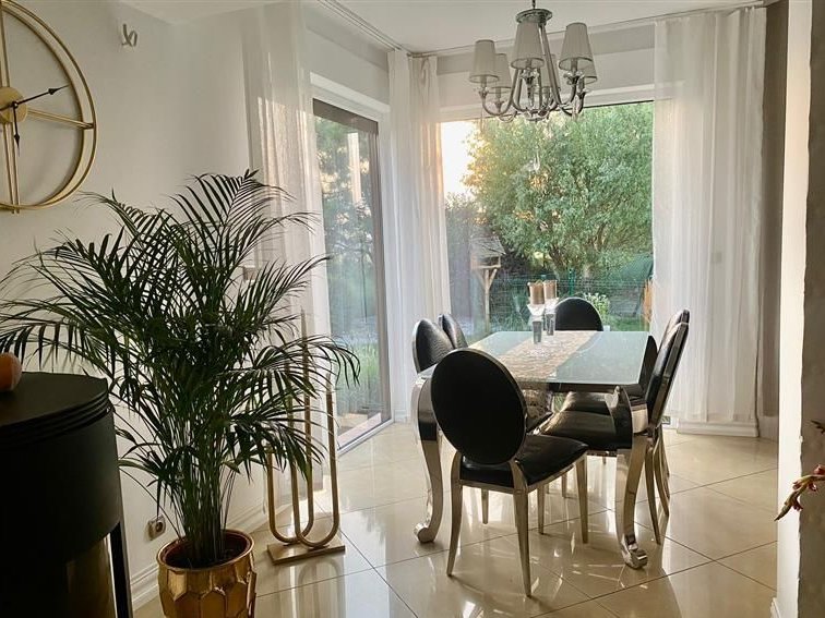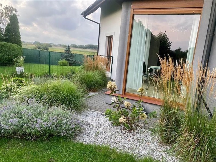 Dom położony nieopodal Pruszcza Gdańskiego, w miejscowości Cieplewo, na pięknie zagospodarowanej działce o powierzchni 719 m2. Budynek oddany do użytkowania w 2017 roku, kilka lat temu przerobiony na 2 oddzielne mieszkania.Na parterze 2 sypialnie ( 18,29 m2 i 15,56 m2), salon (27,12 m2), jadalnia (5,62 m2), kuchnia (11,04 m2) oraz łazienka (5,48 m2). Z salonu wyjście na taras zabudowany szybami hartowanymi przesuwnymi. Na podłogach duże kafle gressowe. W kuchni nowa zabudowa wraz ze sprzętem AGD. Przy wyjściu duży przedsionek z garderobą.Piętro z oddzielnym wejściem, przystosowane do wynajmu. Salon z kuchnią, trzy nieduże sypialnie oraz łazienka. Obecnie wynajęte.Ogrzewanie gazowe.Ogród ogrodzony, zagospodarowany, obsadzony krzewami i kwiatami. Od frontu dwie bramy wjazdowe, teren wyłożony kostką brukową.Miejscowość bardzo dobrze skomunikowana z Trójmiastem, kilka minut samochodem do obwodnicy Trójmiasta. W promieniu 1 km market wraz z parkiem handlowym. Szkoła podstawowa w miejscowości Łęgowo.