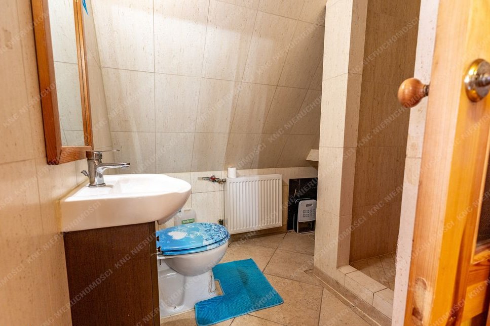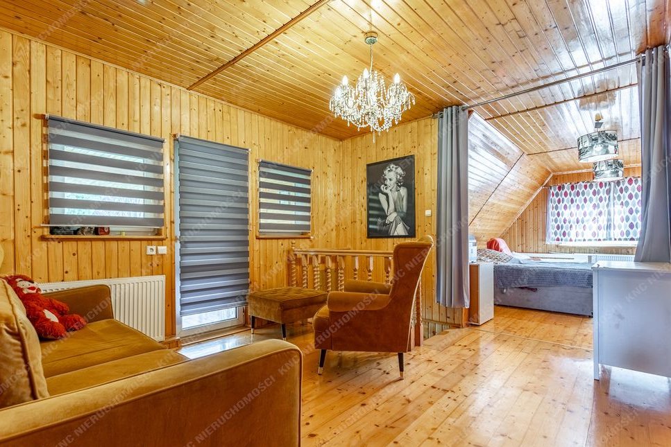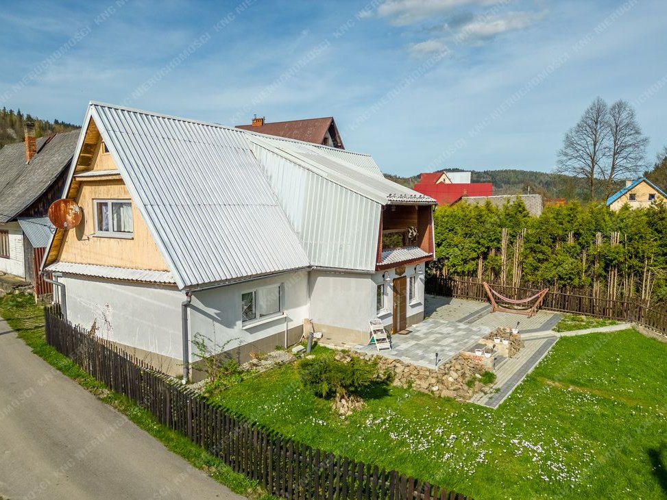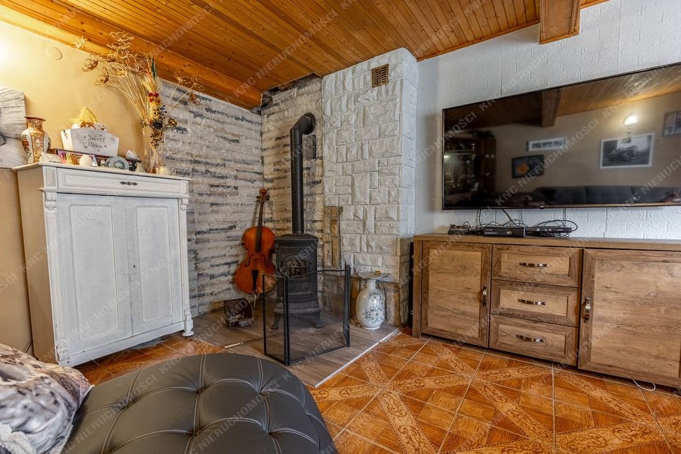 Dom ma powierzchnię ok. 160 m2, wybudowany został w połowie lat 70-tych lecz posiada jeszcze starszą część drewnianą co daje mu niepowtarzalny charakter i klimat. W ostatnich latach przeprowadzano w nim drobne prace remontowe. Nadaje się do zamieszkania zaraz po zakupie, wymaga jedynie odświeżenia. Sprzedawany jest z częściowym umeblowaniem. Na podłogach znajdują się płytki, panele, deska podłogowa. Stolarka okienna PCV. Dach pokryty grubą blachą - nie wymaga wymiany. Dom posiada centralne ogrzewanie - działający starszy piec na węgiel. Dodatkowo w salonie znajduje się piecyk typu koza, którą można opalać w zimniejsze dni. Przed domem jest duży taras wybrukowany kostką co stanowi idealne miejsce na poranną kawę lub wieczorne spotkania z bliskimi. Natomiast w sezonie letnim można wystawić tu balię ogrodową i rozkoszować się urokiem tego miejsca.