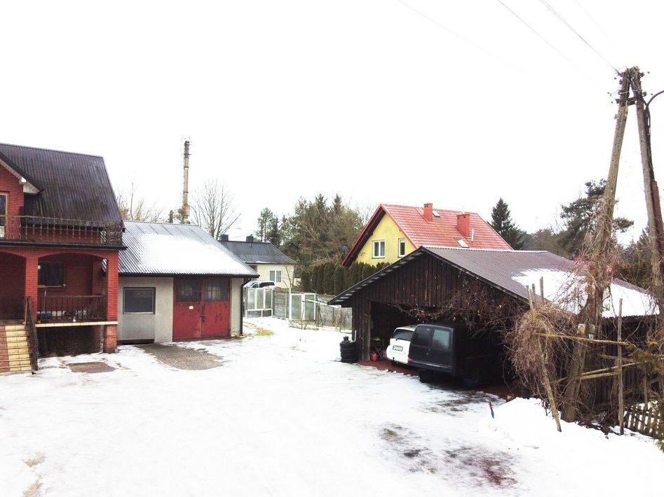 Garaż w bryle budynku + zadaszone garaże na 4 auta