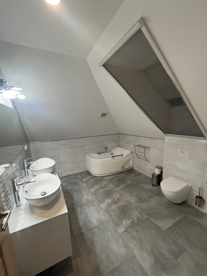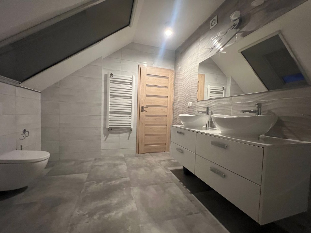 Na poddaszu zostały ulokowane 3 sypialnie, z czego 1 z garderobą i przestronna łazienka.