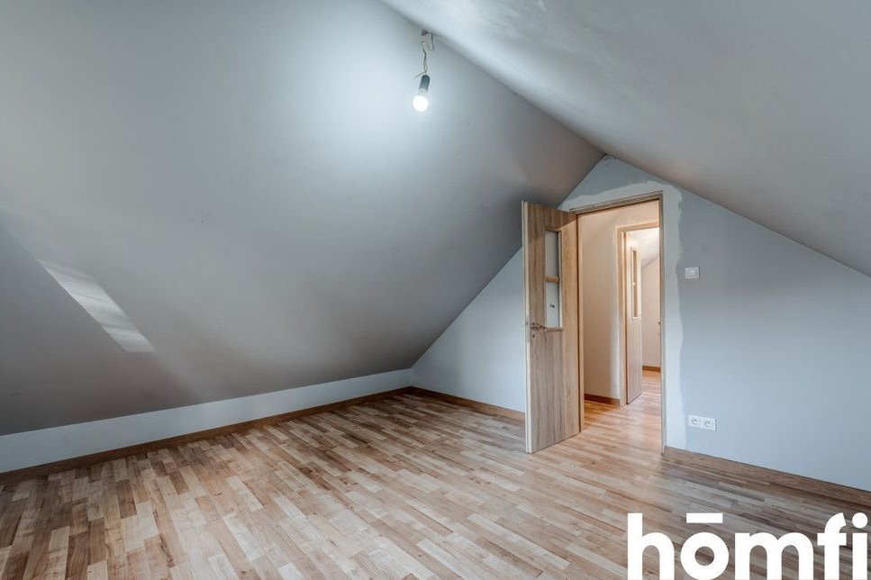 A house surrounded by trees. LOCATION: The house is located in Antoniówka, in the Jedlnia-Letnisko commune—a town known for its quiet, green surroundings and exceptionally pleasant living climate. The house is well-connected to Radom, Jedlnia-Letnisko, Kolonia Jedlnia, and the roads leading towards Kozienice. BUILDING: The building boasts interesting, visually pleasing architecture. The upper part of the facade is made of wood, giving the house a warm and natural look, while the lower part is finished with stone. The house sits on a plot surrounded by trees, providing exceptional privacy and a sense of space. This is an ideal place for those seeking peace, nature, and a respite from the hustle and bustle of the city. The area offers green spaces, walking paths, and a quiet neighborhood. Despite this, the location allows for quick access to Radom, both by car and public transport. Ground Floor: On the ground floor, there is an additional room that can be used flexibly. A separate toilet is located next to it. Due to its height and layout, this floor is ideal as a practical addition to the home, providing additional space that can be used as needed. First floor: main living area: a well-arranged bedroom, a space ready for the kitchen, a bathroom, a bright living room, and access to a large terrace/balcony, perfect for relaxing, hosting summer gatherings, or simply enjoying morning coffee outdoors. This floor offers extensive design possibilities and allows you to create a comfortable, functional living space. Attic: The attic floor features two cozy rooms. Thanks to their layout and the distinctive roofline, they create a warm, homely atmosphere. They would be perfect as bedrooms or children's rooms. FINANCE: The total investment is PLN 700,000. Interested? Contact us at +48 734 827 368 or send us an email using the contact form in the ad. Did you know that with homfi, you can buy a property comprehensively, i.e., with one company? In addition to real estate agents who help you find and purchase properties, we also provide experienced mortgage experts, talented interior designers, and resourceful rental management specialists. With us, you can find a property, finance its purchase, design and finish its interior, and then sell or rent it, with the option of letting us manage the rental. Interested? Ask your listing manager for details.