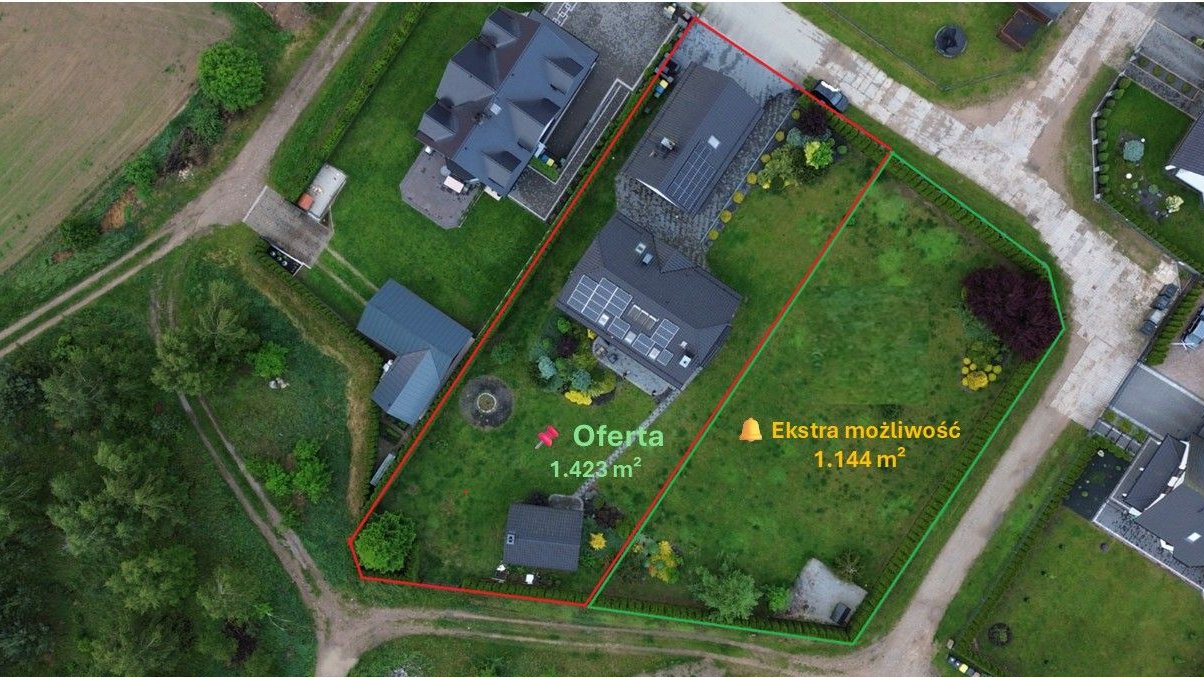Większa działka, więcej możliwości – na mapie kolorem zielonym zaznaczona działka o powierzchni 1.144 m², którą możesz kupić w przystępnej cenie ale tylko w połączeniu z podstawową ofertą. Jeśli zaineresowany(a) chętnie udzielę więcej informacji.