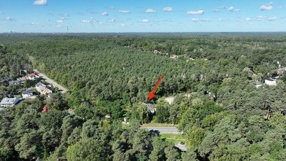 Skrajna działka, od zachodu graniczy z lasem rozciągającym się na 2 km. Dom jest zorientowany na południe (wejście główne), a taras wychodzi na stronę zachodnią. Cała posesja tonie w zieleni - rosną tu sosny, świerki, orzech, akacje i krzewy ozdobne.