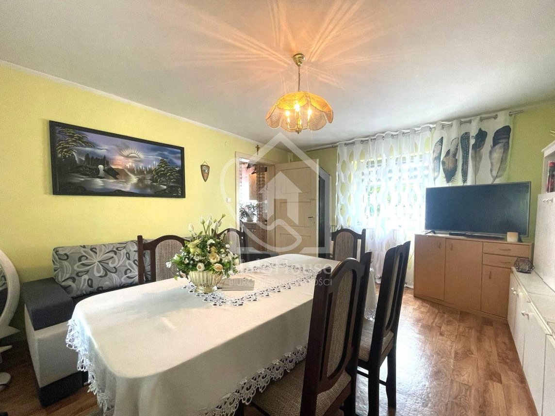 Powierzchnia domu to aż około 150m2, który usytuowany jest na działce o powierzchni 2958m2.
